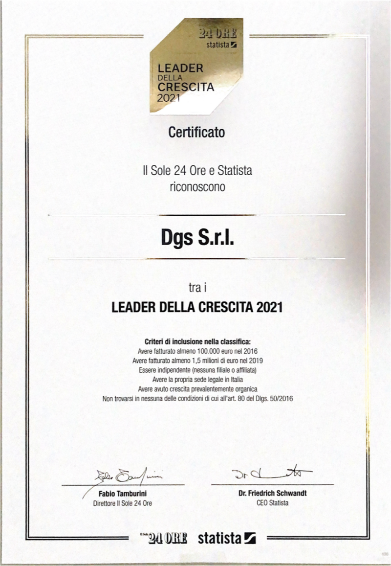 DGS S.r.l. obtain the certificate of “Leader of growth 2021”.
